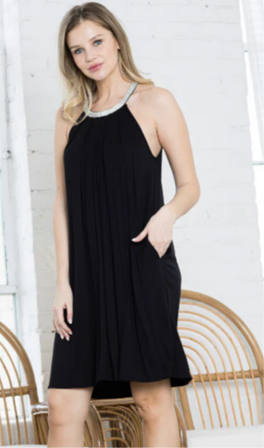 STONE DETAIL HALTER SUMMER T-SHIRT DRESS