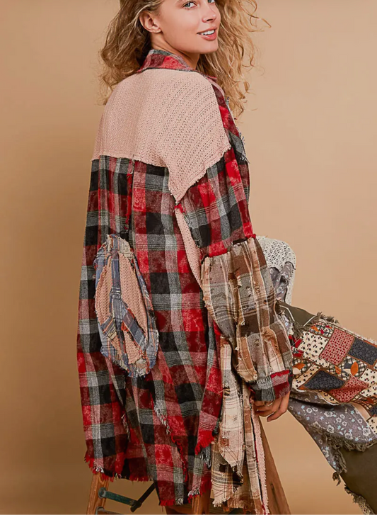 Baddie Red/Multi Or White Color Plaid Peace Sign Oversized