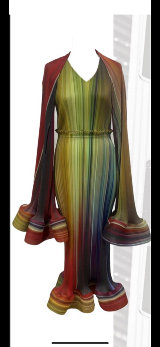 In My Own Lane Multi Color Dress with Cape Sleeve Cover