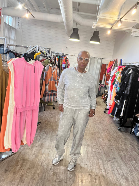 Make It Work 2pc Rhinestone Jogger Set