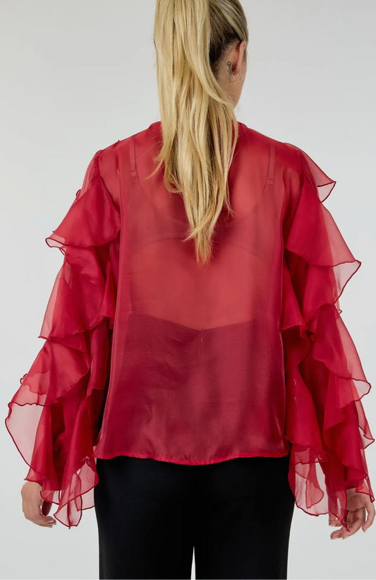 CASCADING RUFFLE BLOUSE TOP_Burgundy