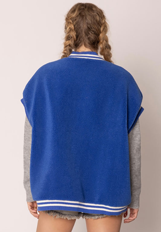 Game Day Sherpa Vest_Royal Blue & Ivory