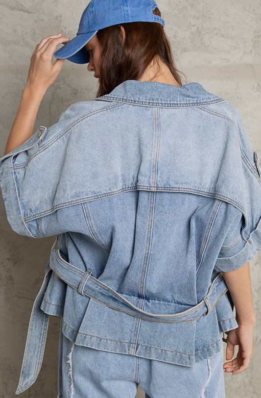 Asymmetrical Denim Zipper Waist Jacket