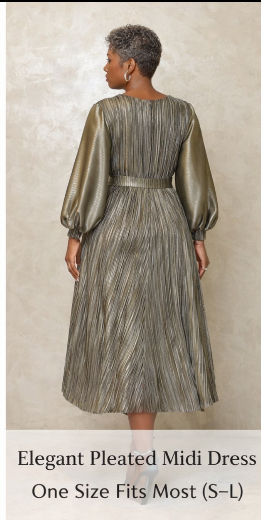 Metallic Pleats Metallic pleated dress with belt